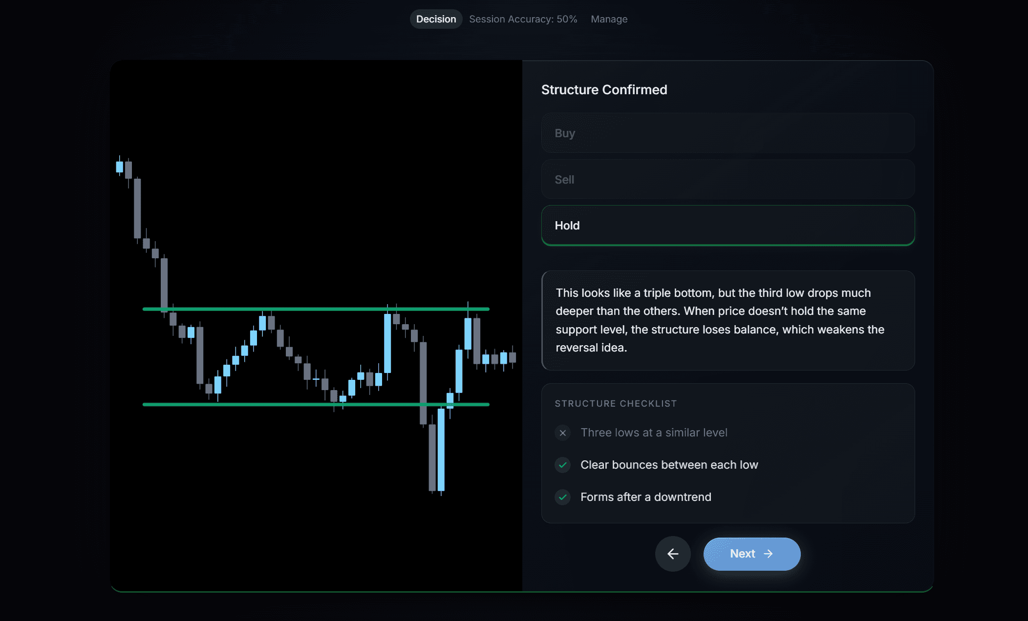 No tool should guarantee profit. This platform develops the interpretive skill that profitable traders depend on.