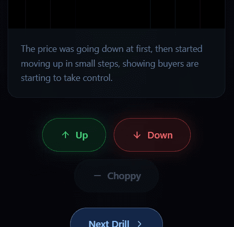 Yes. Drills build chart intuition and pattern recognition, the foundation of confident trading.